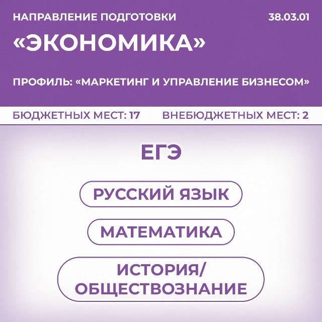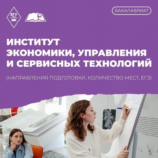 Предлагаем вам ознакомиться с информацией о поступлении на направления бакалавриата в институт экономики, управления и сервисных технологий.