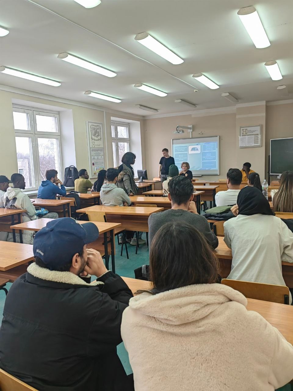 Студенты ИЭУиСТ Артем Бекренев, Анастасия Бойченко, Яни Фиделе Батчамонг встретились с иностранными студентами, которые проходят обучение на подготовительном факультете. Здесь учатся граждане Камеруна, Гвинея-Бисау, Конго, Кот-д'Ивуара, Ганы, Сенегала, Шри-Ланка, Сомали, Туниса, Марокко и ряда других стран.